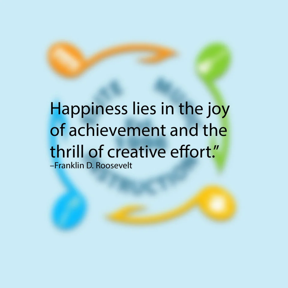 "Happiness lies in the joy of achievement and the thrill of creative effort.” –Franklin D. Roosevelt